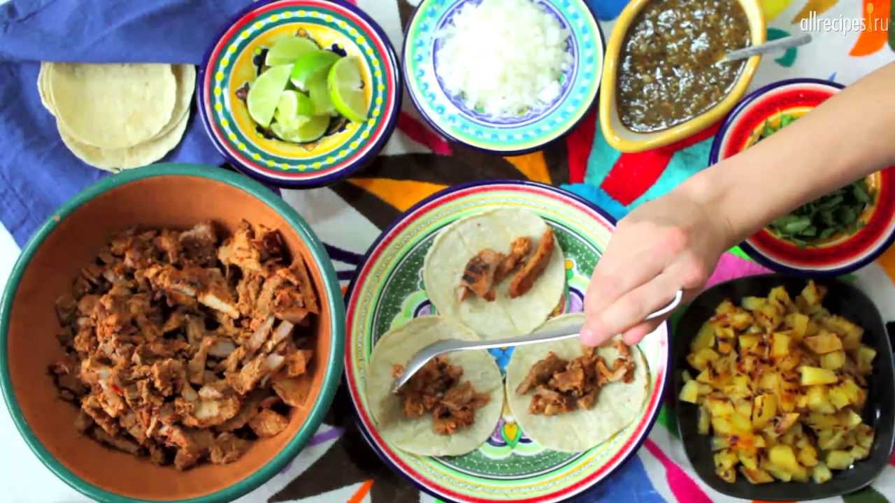 Маринованные мясо поджаренное на гриле, нарезают ломтикаами и подают завернутым в кукурузные лепешки с ананасом, сальсой, кинзой.