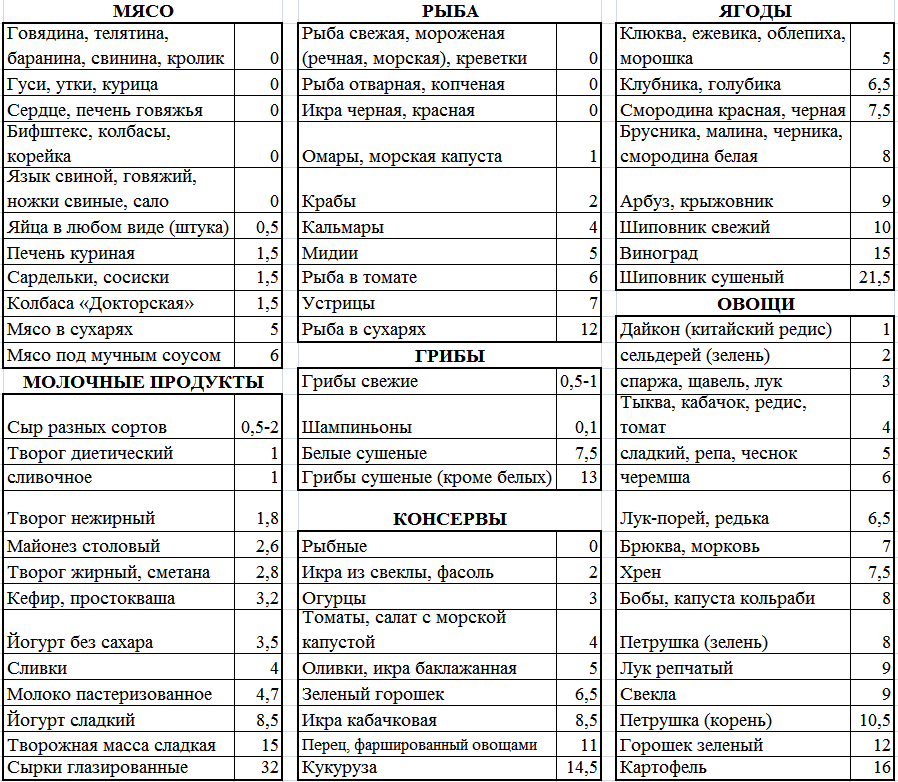 Таблицы Кремлевской диеты: